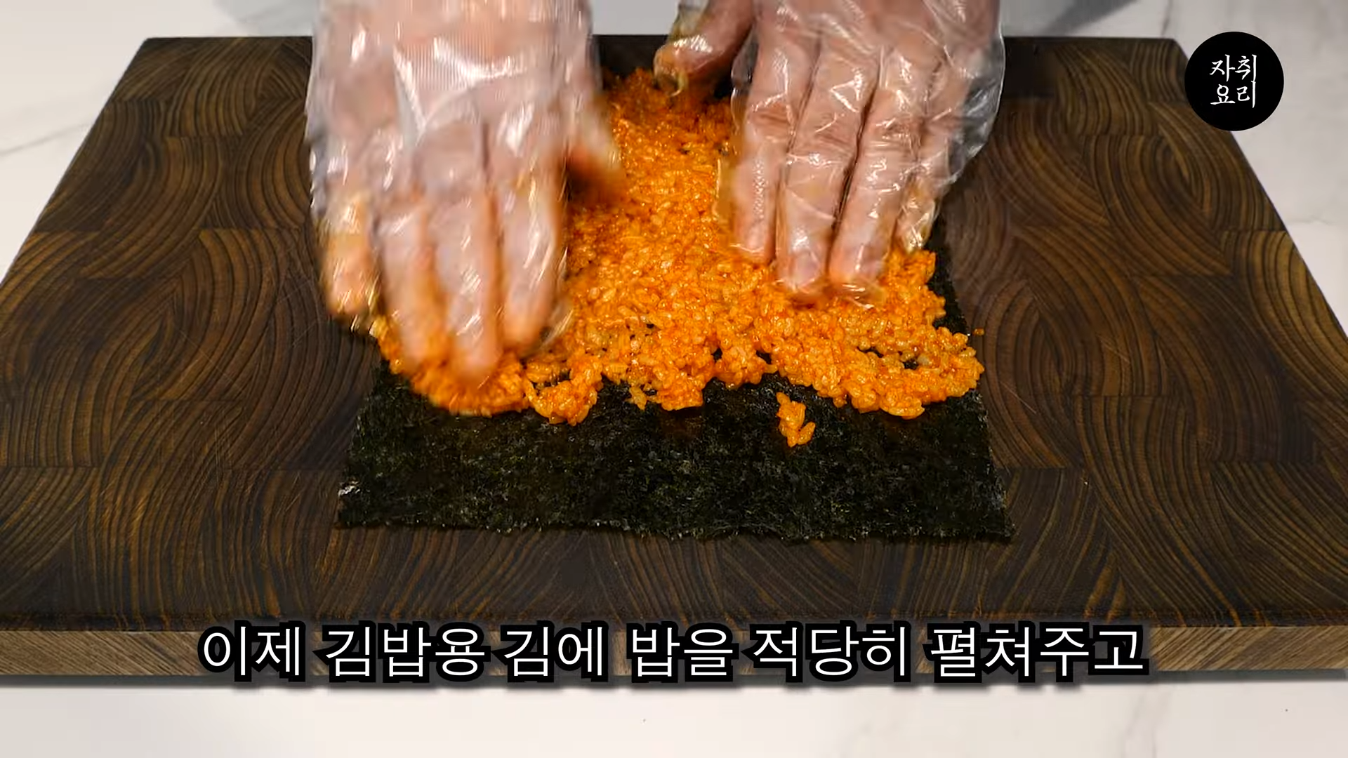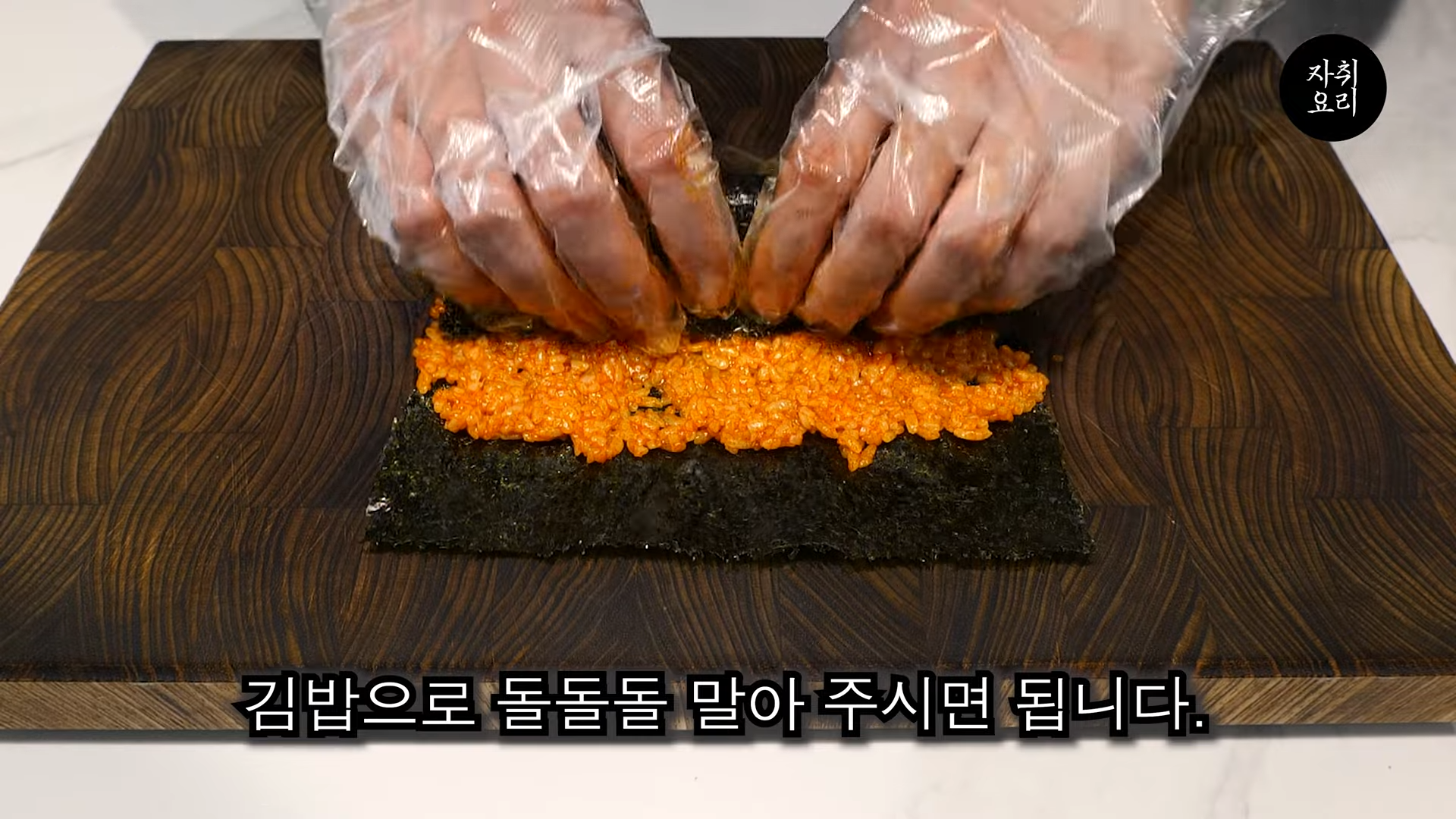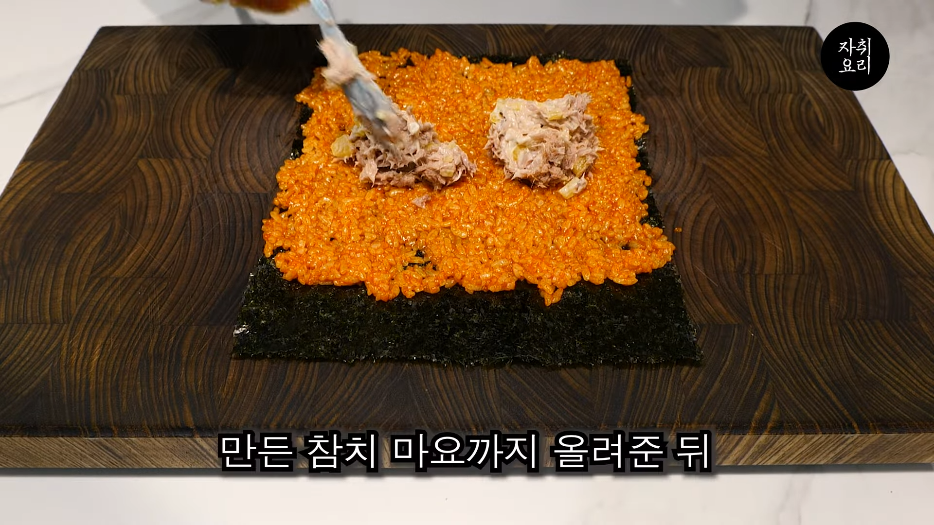 3. 고추장 밥과 참치마요를 합쳐 김밥을 싸줍니다.